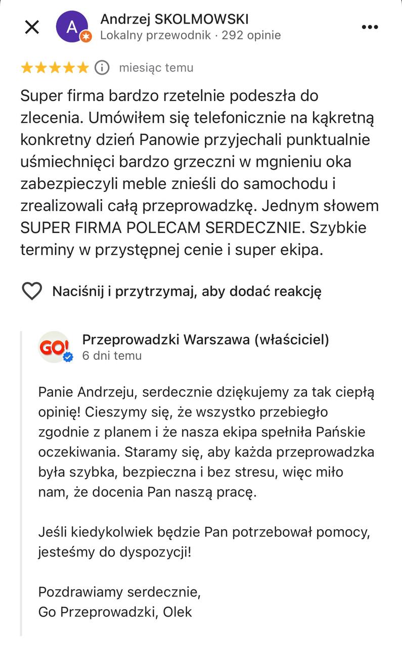 Tyle wystarczy naszym klientom, by zrozumieć, że wybór Go Przeprowadzki to naprawdę bardzo dobra decyzja.